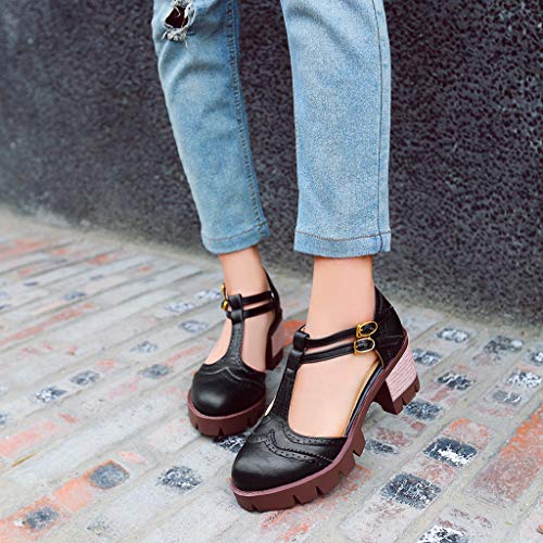 HOT ! MIOKE Women's T-Strap Mary Jane Pumps Retro Round Toe Platform Chunky Heel Brogue Vintage Oxford Shoes