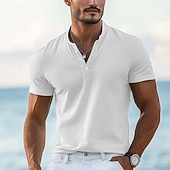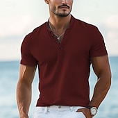 More information about Men's T shirt Henley Shirt Tee Top Short Sleeves Plain Designer Basic Modern Contemporary Buttons Henley Vacation Street Going out Summer Wine Black White Henley T-Shirt