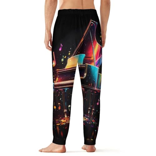 HOT ! Colorful Piano Keyboard Music Note Mens Pajama Pants Lightweight Lounge Pant Sleep Pj Bottoms with Pockets