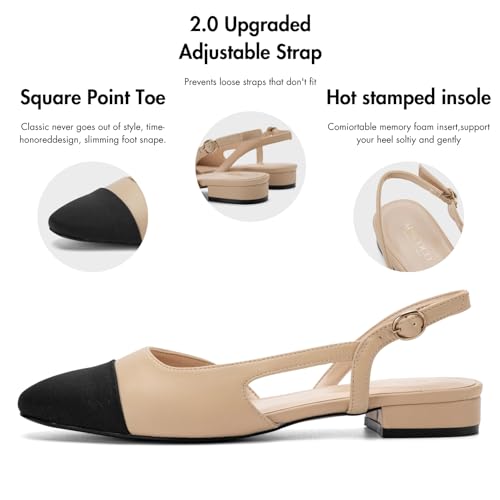 Slingback Flats for Women 2.0 Square Toe Two Toned Flats Wedding Shoes Low Heel Pumps for Women