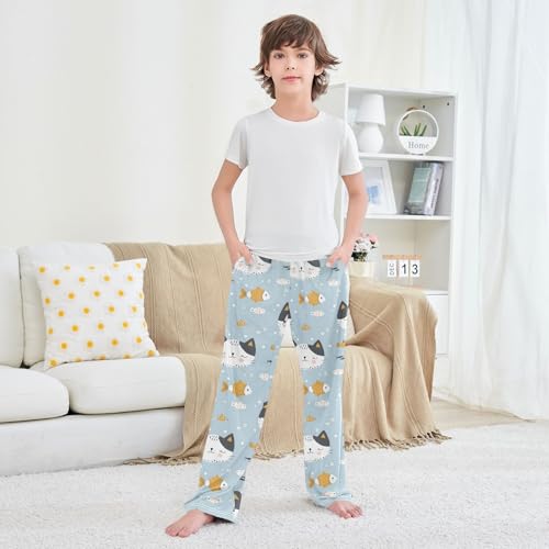 Cute Cat with Fish Pajamas Bottoms with Pockets Comfy Pjs Sleepwear Elastic Waistband Pajamas Pants Lounge Pants 6