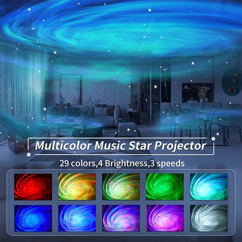 - 4-Color Fantasy Galaxy & 29 Effects: Unlike other light projectors on the market, our star light projector offers blue, red, white, and green lights, allowing you to create 29 different galaxy light effects. Customize the light effect, brightness, light flow speed, and create a soothing atmosphere that suits your needs.