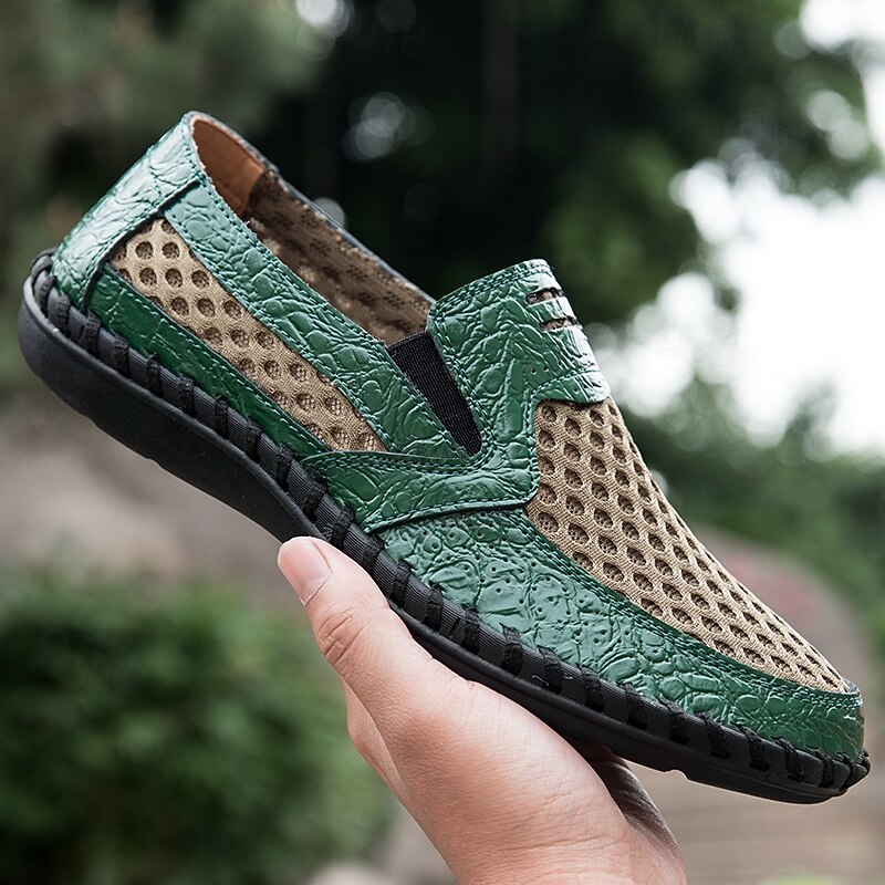 Men's Brown Crocodile Pattern Slip-On Loafers - Stylish Business & Casual Shoes with Textured Faux Leather Design 24