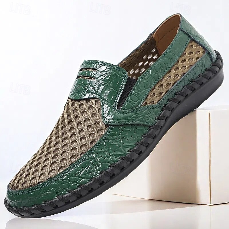 More information about Men's Brown Crocodile Pattern Slip-On Loafers - Stylish Business & Casual Shoes with Textured Faux Leather Design