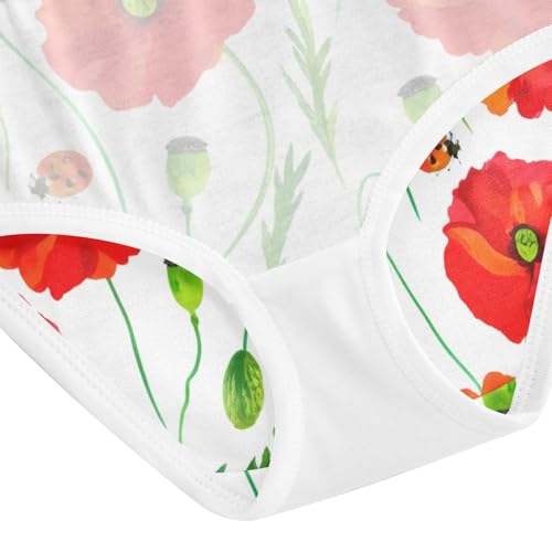 Designer Toddler Girls Underwear 2t Cotton Cute Panties Girl Vivid Red Poppy Flowers White Briefs Girls Undies 5