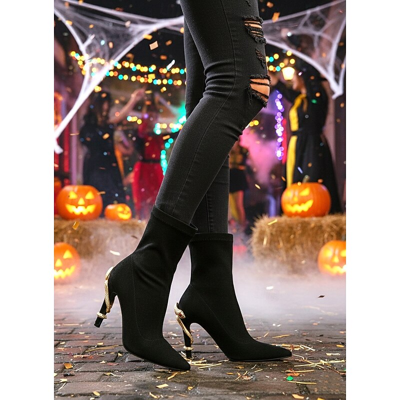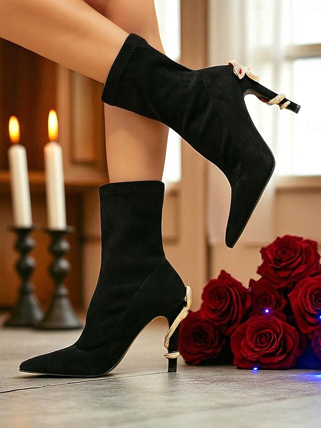 $54.99 - Women's Stiletto Ankle Boots – Black Suede with Gold Snake Heel Design, Elegant Gothic High Heel Booties for Cocktail Party and Halloween Costumes 2025. Shop for cheap Shoes For Women online? Buy at lightinthebox.com on sale today!