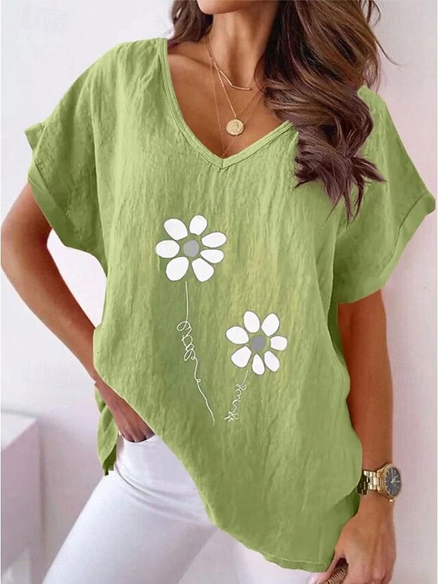 More information about Women's Shirt Floral Graphic Plants Vintage Stylish Classic Short Sleeve Crew Neck Regular Tops Daily Beach Wear Vacation Wear Print Pink Blue Green Summer Spring