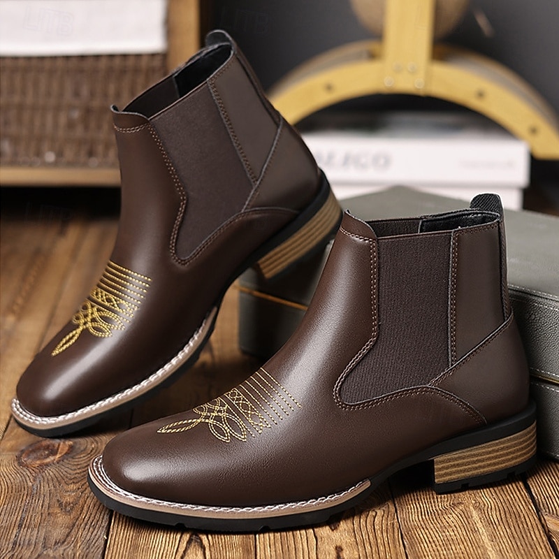 HOT ! Men's Brown Chelsea Boots with Western Stitch Detailing – Stylish Ankle Boots for Fall Outfits, Country Weddings and Casual Business Wear