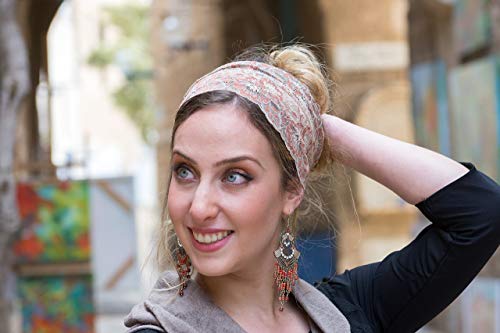 More information about Stunning Cream & Umber Embellished Lace Headband Bandana, Tichel, Head Covering,scarf, Half Coveing, Pre-tied,loss Hair