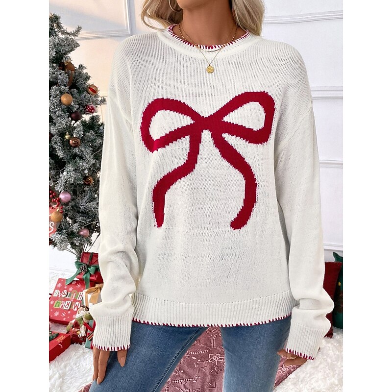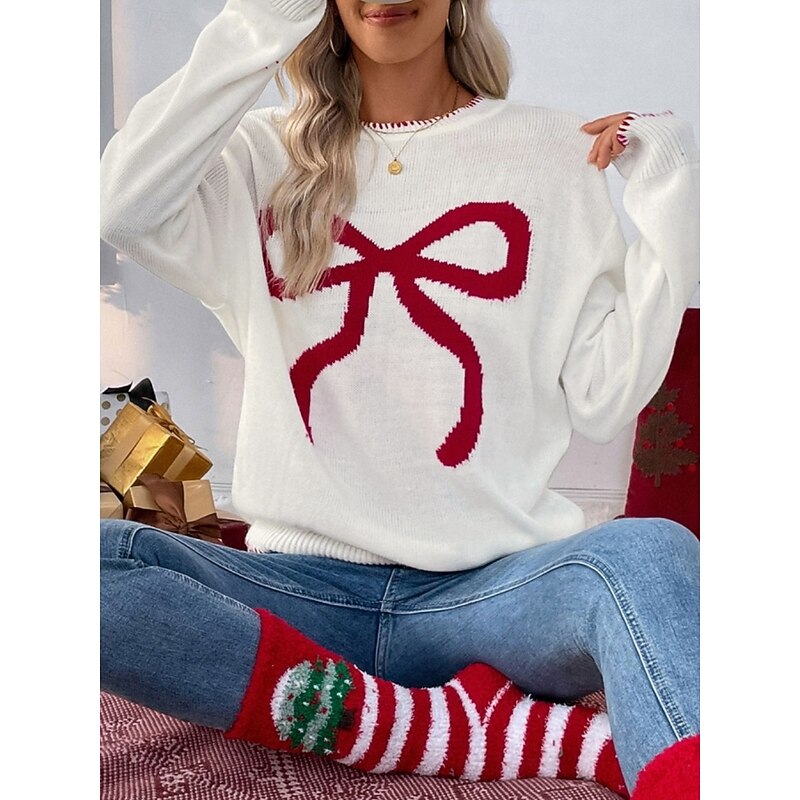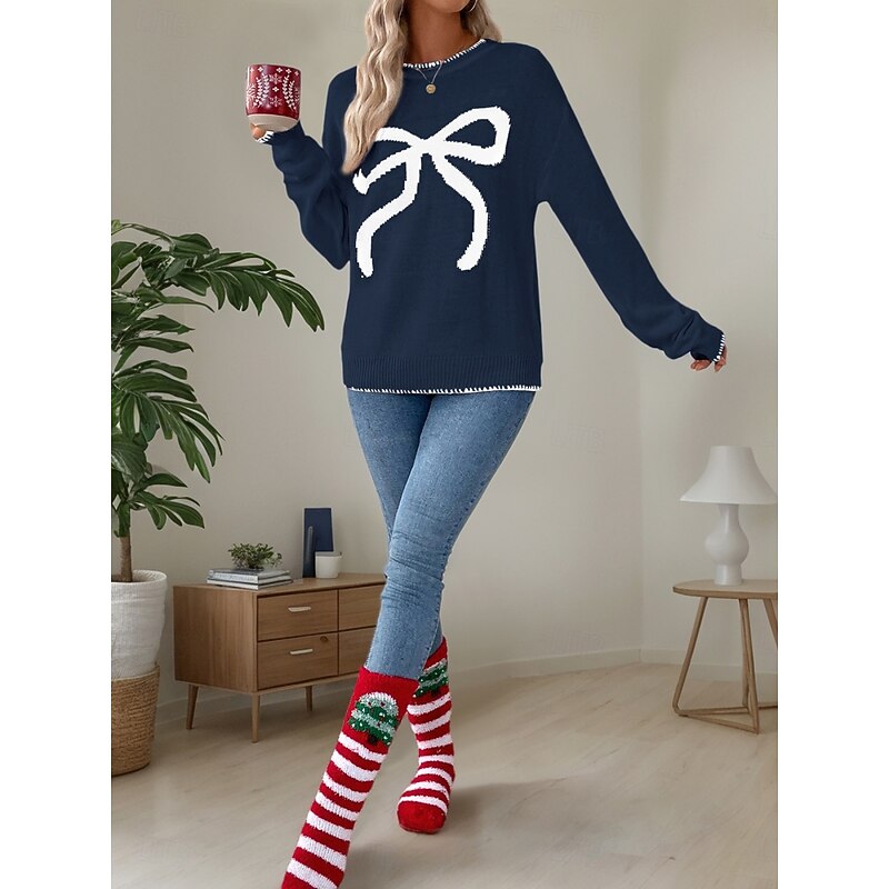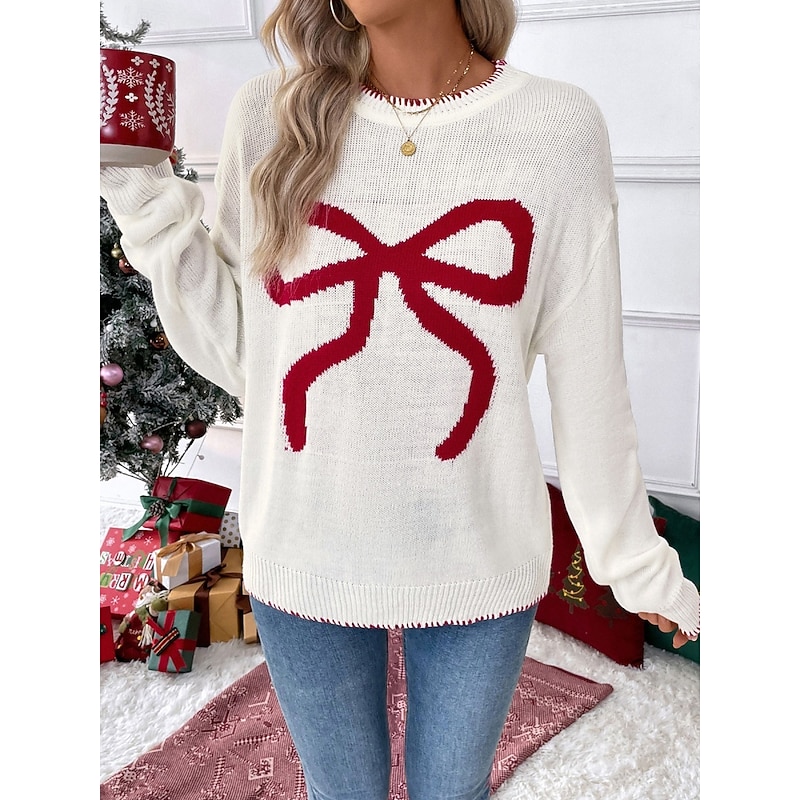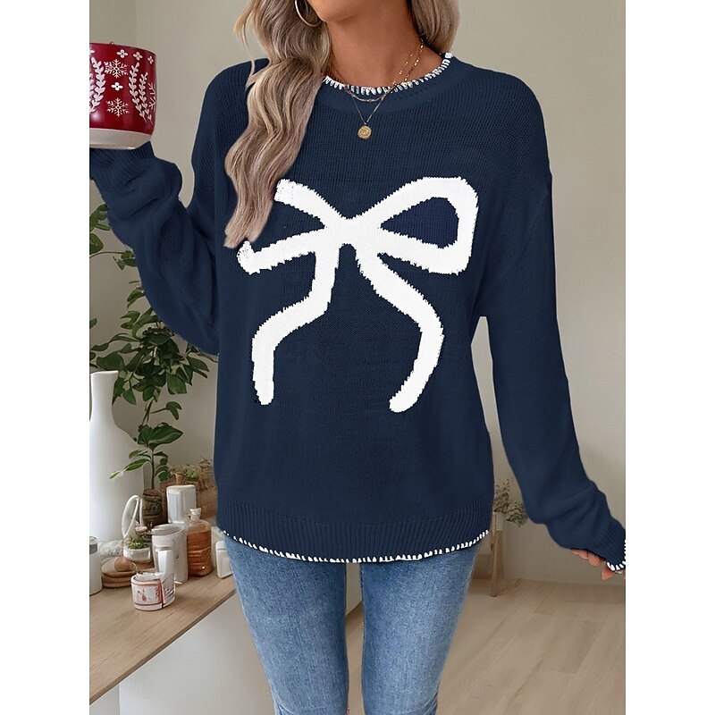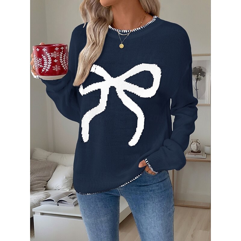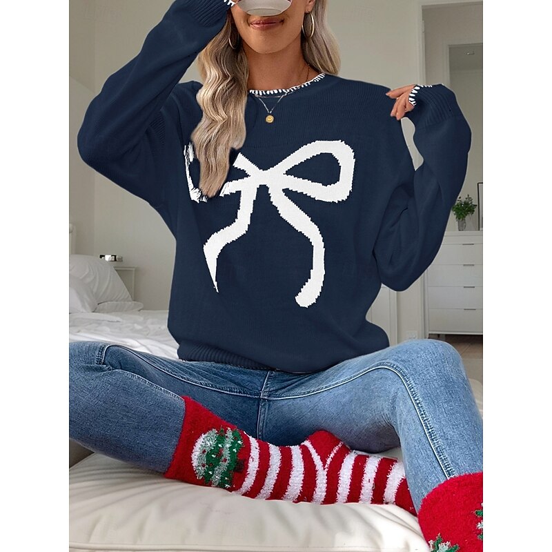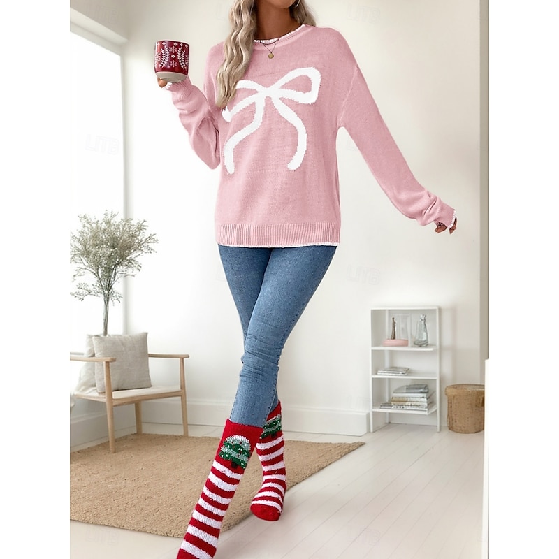 More information about Women's Valentine Pink Sweater Casual Soft Graphic Ribbed Crew Neck Knitted Long Sleeve Regular Tops Knit Outdoor Daily Weekend Black White Fall Winter