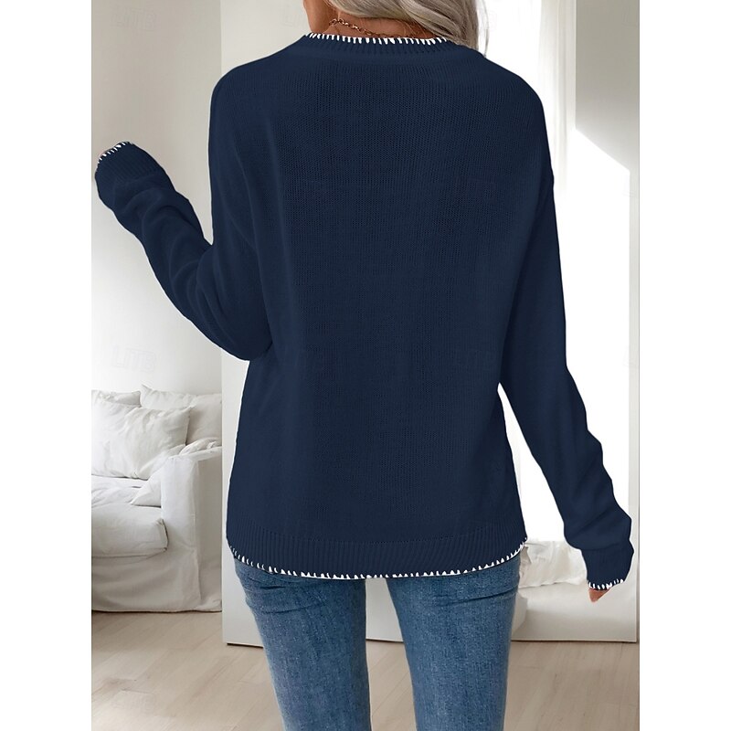 Women's Valentine Pink Sweater Casual Soft Graphic Ribbed Crew Neck Knitted Long Sleeve Regular Tops Knit Outdoor Daily Weekend Black White Fall Winter 22