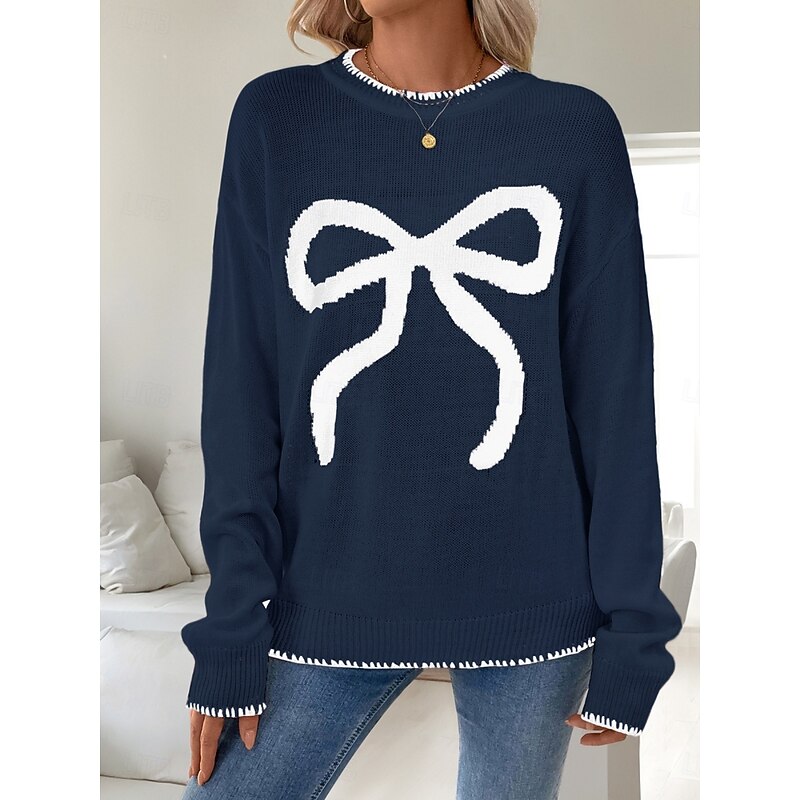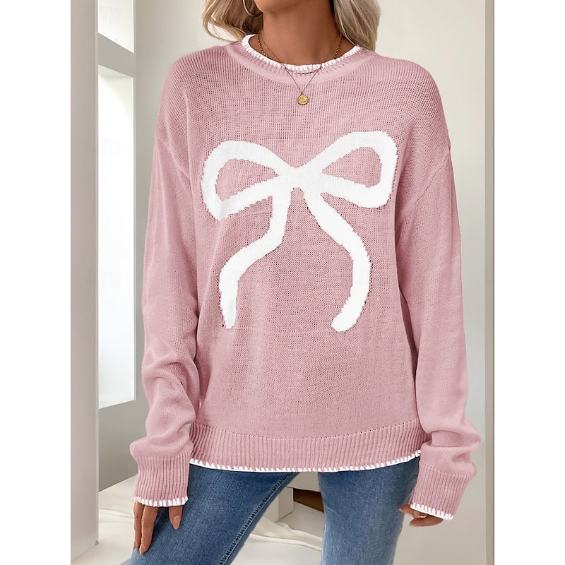 Women's Valentine Pink Sweater Casual Soft Graphic Ribbed Crew Neck Knitted Long Sleeve Regular Tops Knit Outdoor Daily Weekend Black White Fall Winter 17