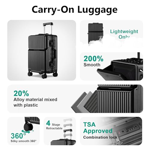 More information about Hard Shell Luggage 24 Inch Travel Luggage, Carry-On Luggage Spinner TSA with Lid, ABS Aluminum Frame,Lightweight Travel Luggage 20'' 24'' 26''Carry-On (upgraded black, 24 inch)