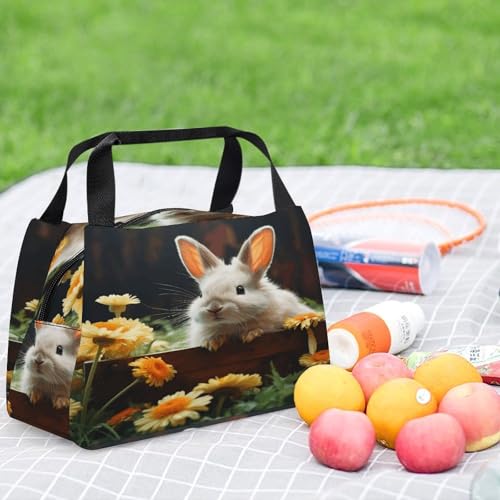 Adult Insulated Bags, Rabbit And Flower Printed Cooler Bags, Insulated Tote Bags, Grocery Tote Bags 6