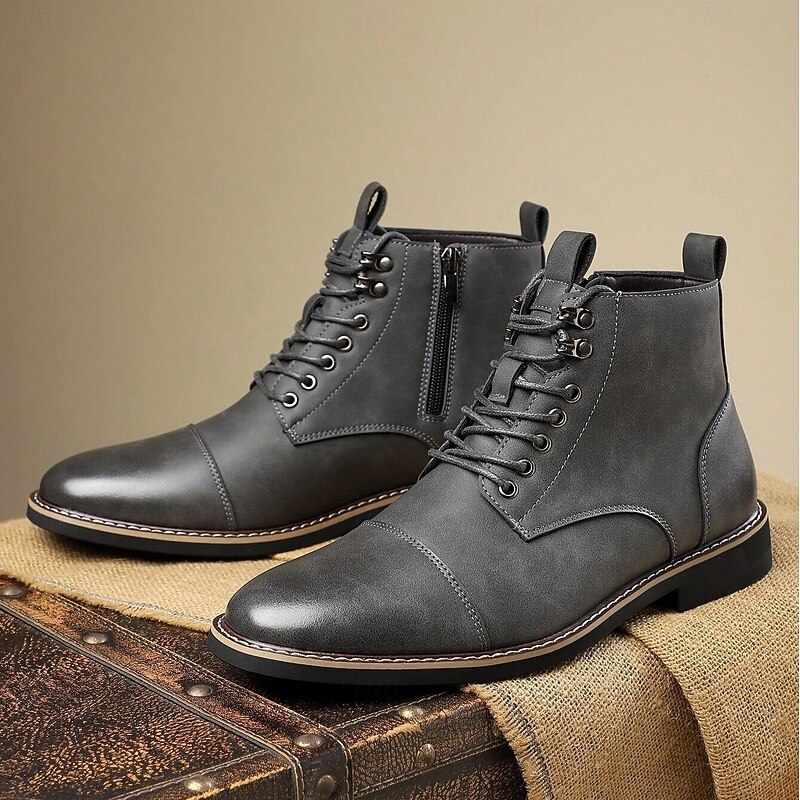Men's Vintage Lace-Up Boots – Cap Toe Ankle Boots with Classic Stitching for Work, Weekend & Autumn Wear 1