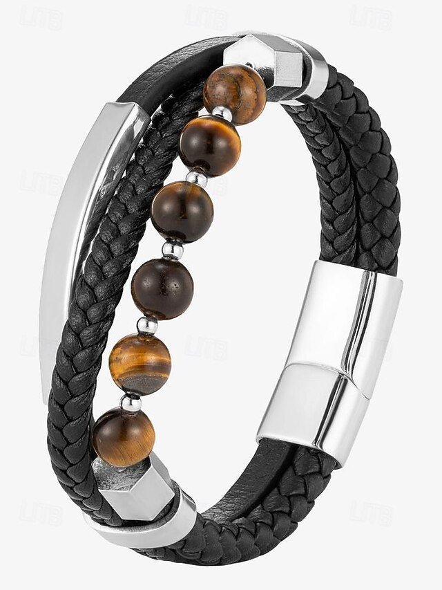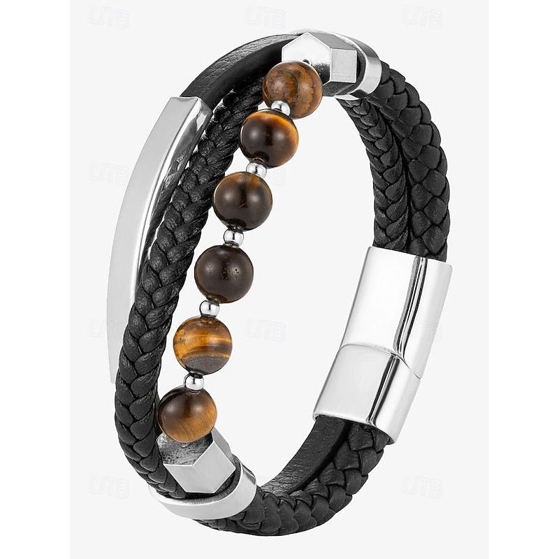 $18.99 - Men's Braided Leather Bracelet with Tiger Eye Beads and Stainless Steel Accents – Stylish Jewelry for Casual or Formal Occasions 2025. Shop for cheap Men's Jewelry online? Buy at lightinthebox.com on sale today!