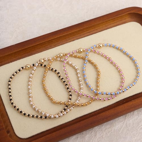 Gold Beaded Stackable Friendship Bracelets Set for Women, Handmade Boho Stretch Summer Jewelry Gift. 5