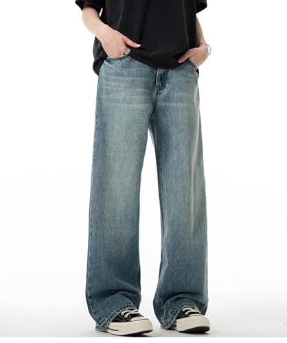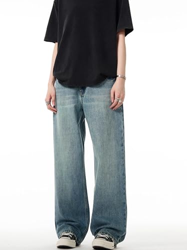 Men's Jeans Vintage Washed Denim Jeans Loose Fit Trouser for Men 6