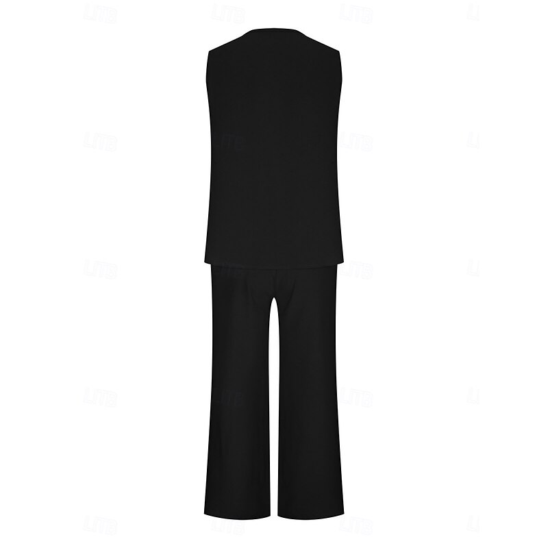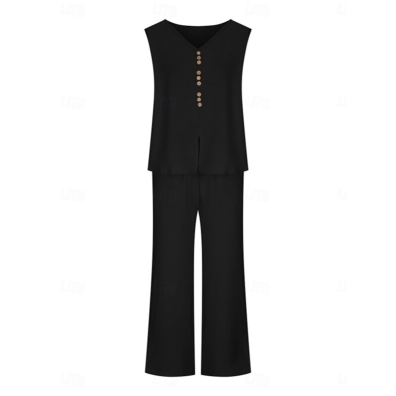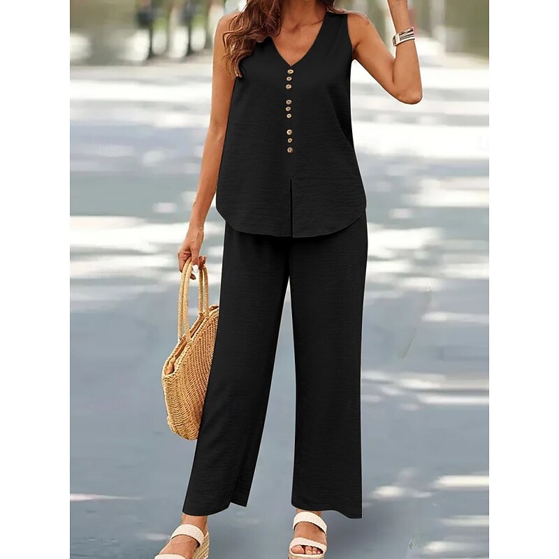 More information about Women's Fashion Streetwear Daily Pants Sets Sleeveless V Neck Plain Casual Daily Black Navy Blue Green Summer Loose Fit