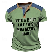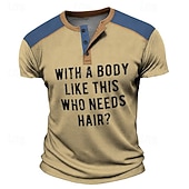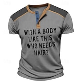 Funny Slang With a Body like This Who Needs Hair Men's Casual 3D Print Waffle T Shirt Tee Henley Shirt Sports Outdoor Casual Holiday T shirt Blue Green Khaki Short Sleeve Henley Shirt