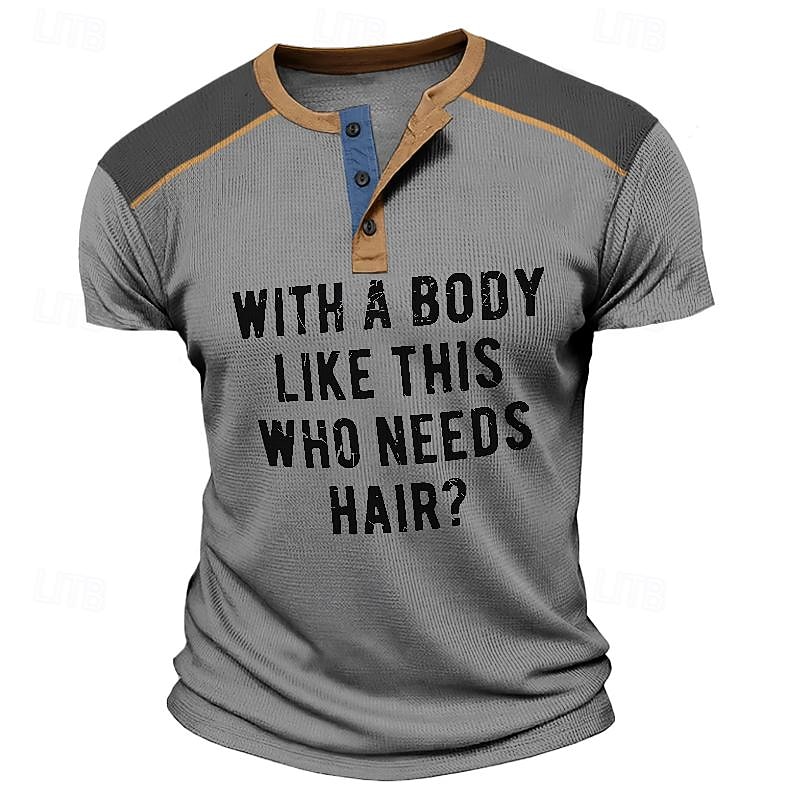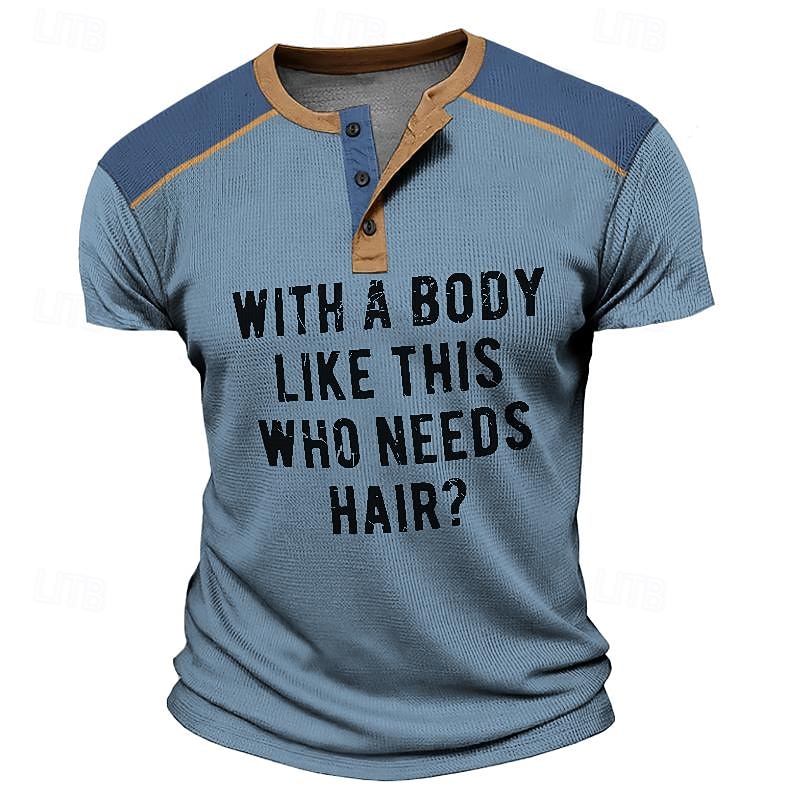 More information about Funny Slang With a Body like This Who Needs Hair Men's Casual 3D Print Waffle T Shirt Tee Henley Shirt Sports Outdoor Casual Holiday T shirt Blue Green Khaki Short Sleeve Henley Shirt