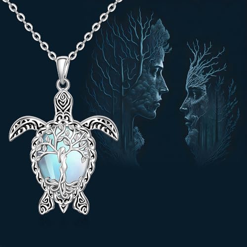 HOT ! Fenthring Turtle Necklace for Women Moonstone Tree of Life Sea Turtle Necklace Mom Turtles Pendant Jewelry Sterling Silver Birthday Mothers Day Gifts