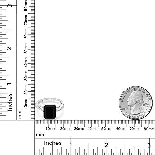 Gem Stone King 3.39 Cttw Black Onyx and White Created Sapphire Wedding Engagement Ring For Women | 925 Sterling Silver | Gemstone Birthstone | 10X8MM Emerald Cut | Available In Size 5, 6, 7, 8, 9 6