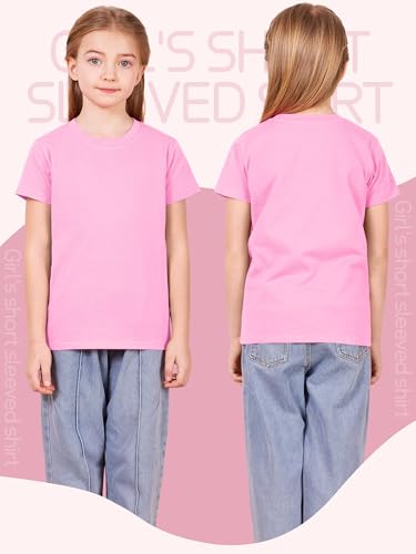 4 Pack Girls Shirts Cotton Short Sleeve Shirts for Girls Kids T-Shirts Tees Summer Tops 5