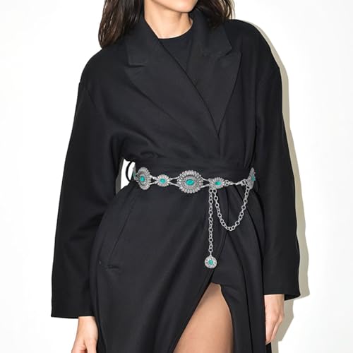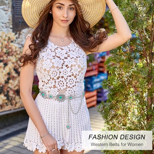 HOT ! Prasacco Turquoise Belt for Women Western Belt Metal Concho Belts Western Chain Cowgirl Belts for Dresses Jeans Country Concert Outfit