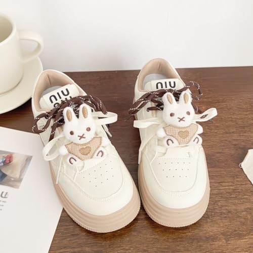 Women Cute Platform Sneakers, Korean Style Bunny Charm Candy Color Girls Casual Walking Shoes Student Comfortable Slip-On 5
