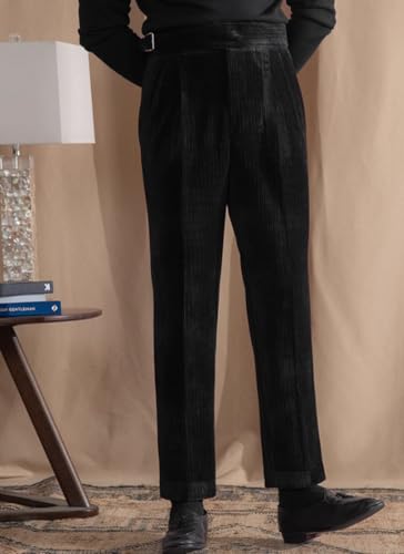 VENYNG Men's High Waisted Corduroy Dress Pants Autumn Adjustable Waist Business Casual Pants for Men Straight Fit 6