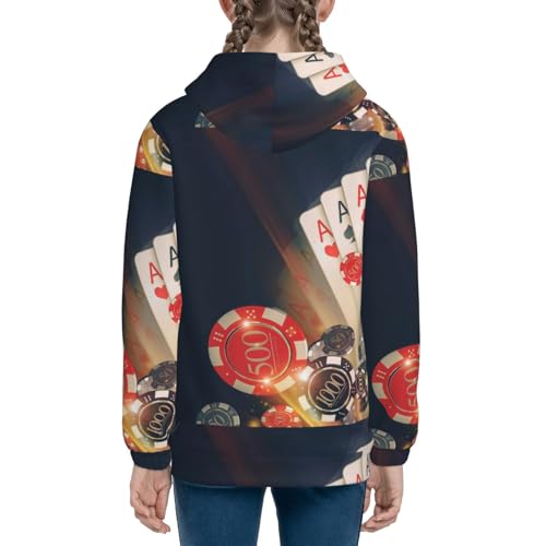 Casino Poker Chips Kids Pullover Hoodies Boys Zip Up Sweatshirts Girls Athletic Clothes with Pocket 5