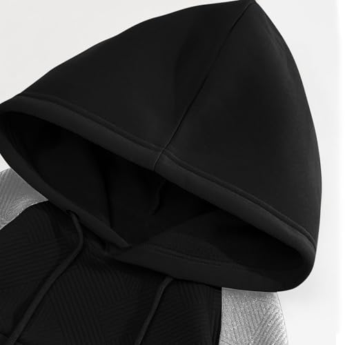 Xiaojmake Men's Novelty Color Block Pullover Top Fleece Hoodie Coat Long Sleeve Crew neck Casual Sweatshirt with Pockets 5