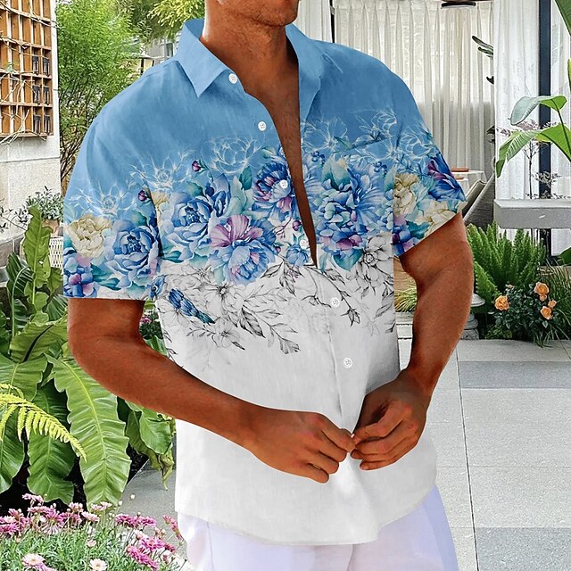 HOT ! Men's Floral Print Flowers Shirt Summer Hawaiian Shirt Button Up Shirt Short Sleeve Hawaiian Vacation Holiday Beach Wear Summer Turndown 3D Print Front One Pocket Linen Like Shirt Pink Blue Green