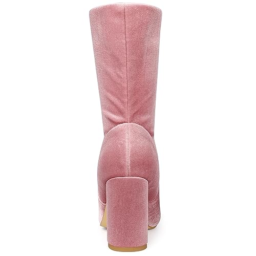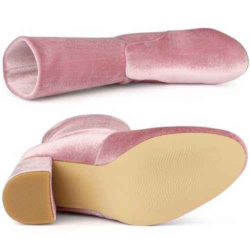 Allegra K Women's Velvet Round Toe Block Heels Foldable Mid Calf Boots 4