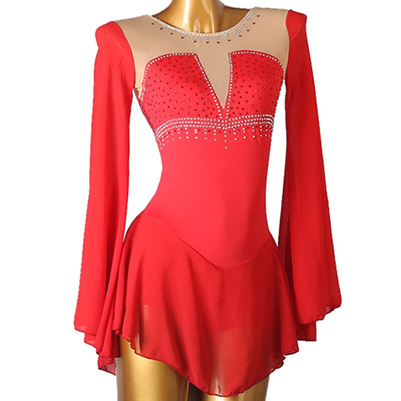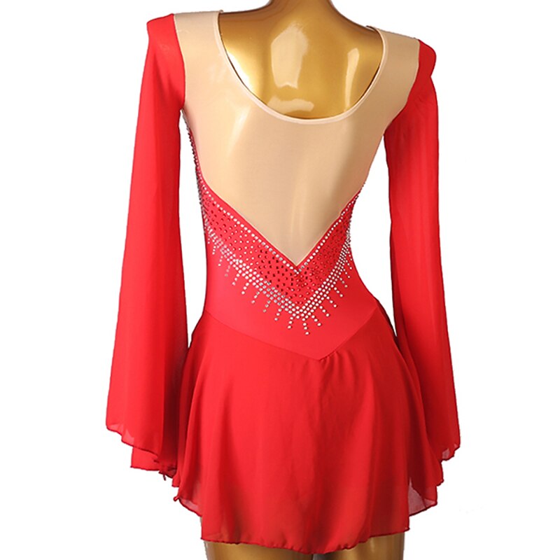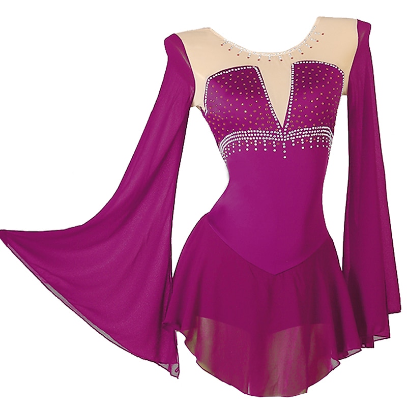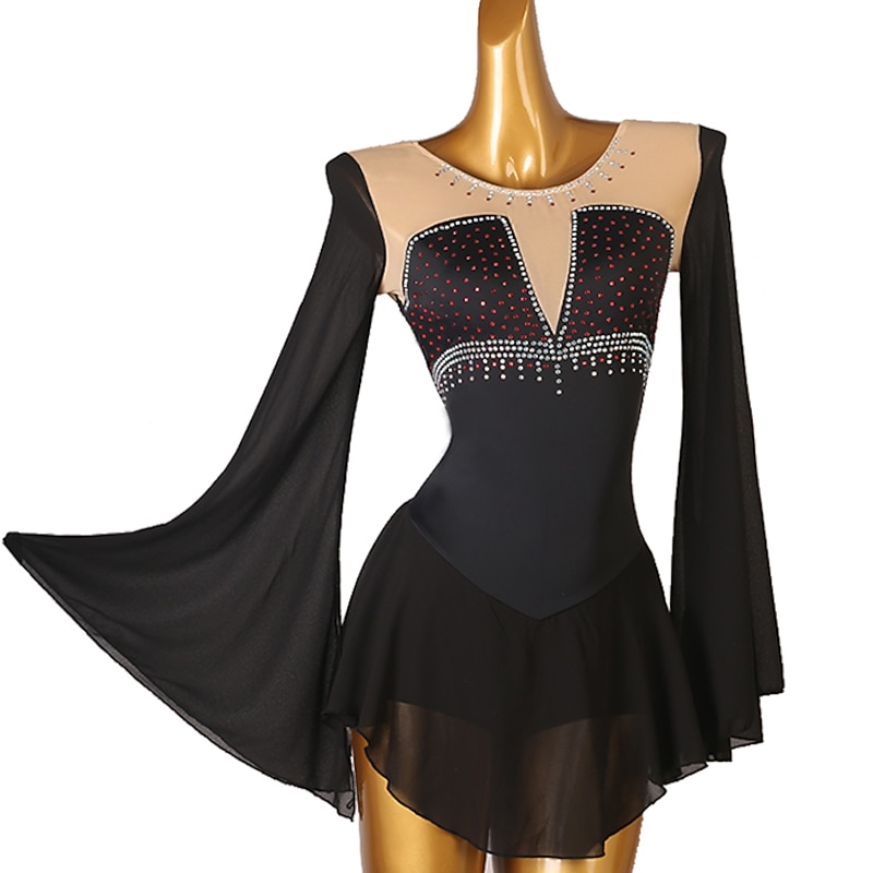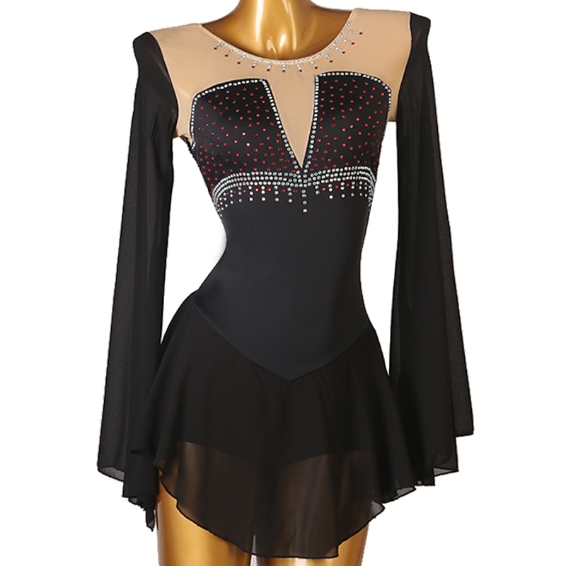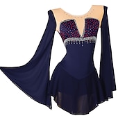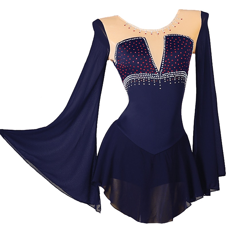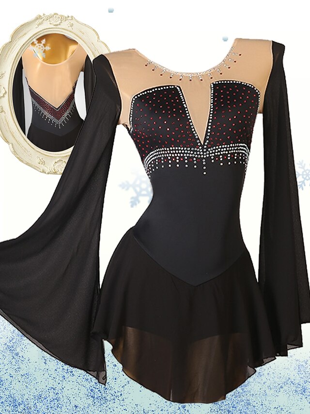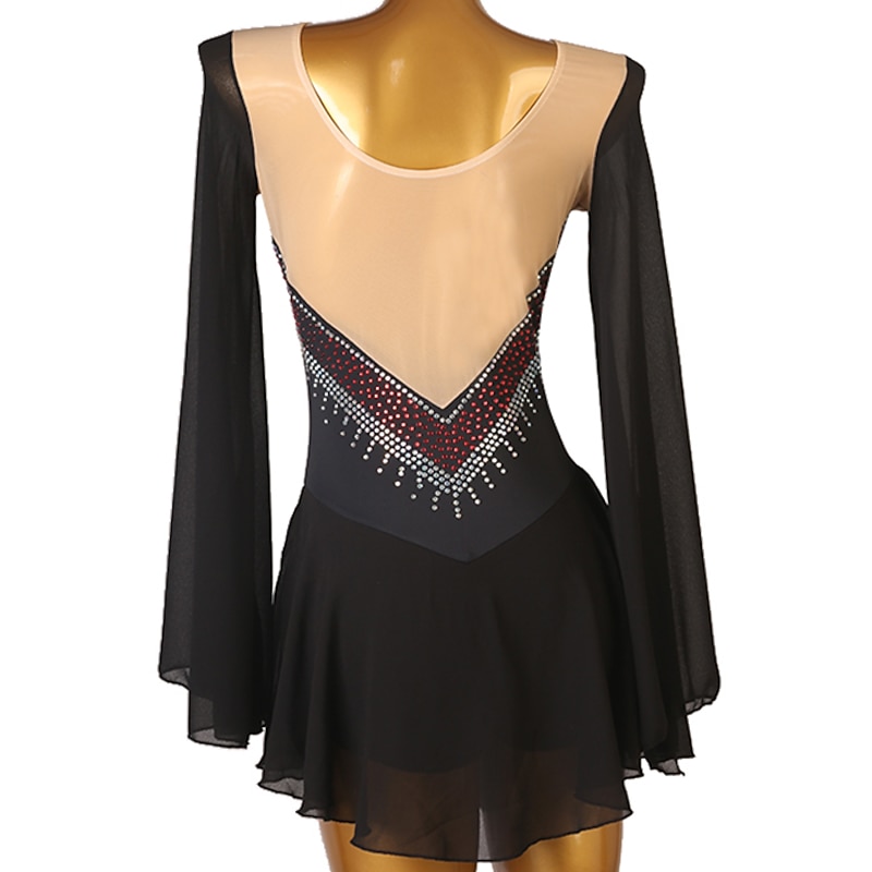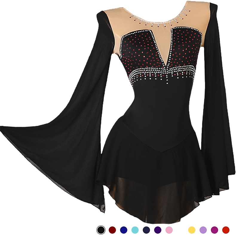 More information about Figure Skating Dress Women's Girls' Ice Skating Dress Outfits Black Burgundy Royal Blue Patchwork Mesh Spandex High Elasticity Training Practice Professional Skating Wear Handmade Classic Crystal
