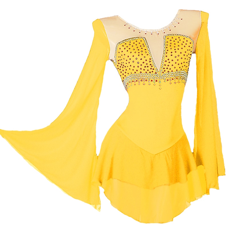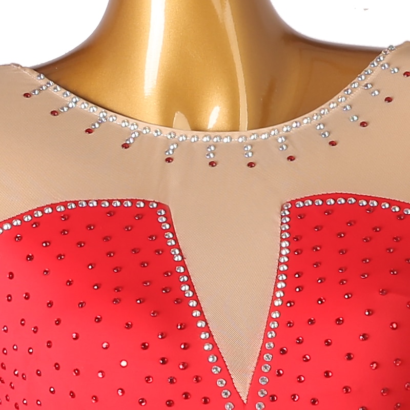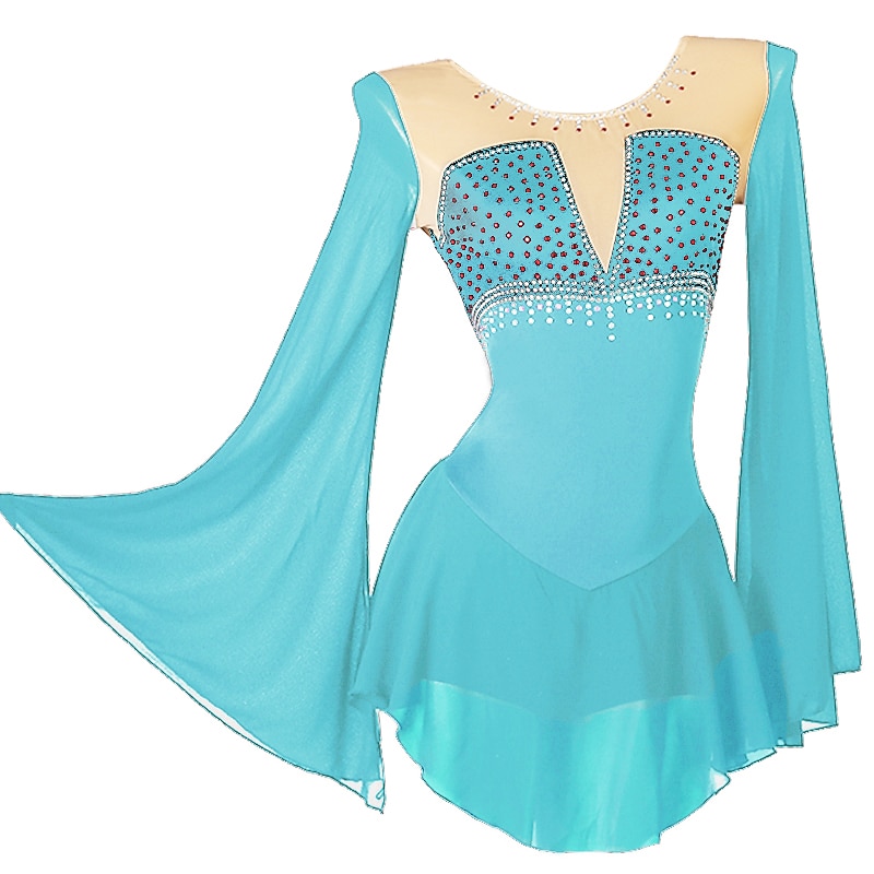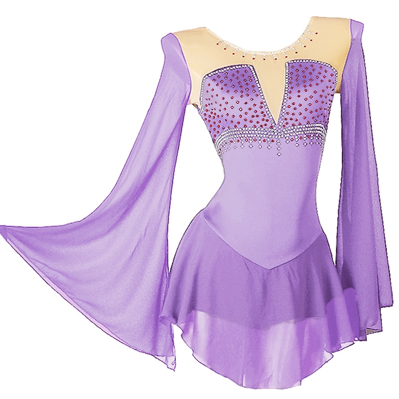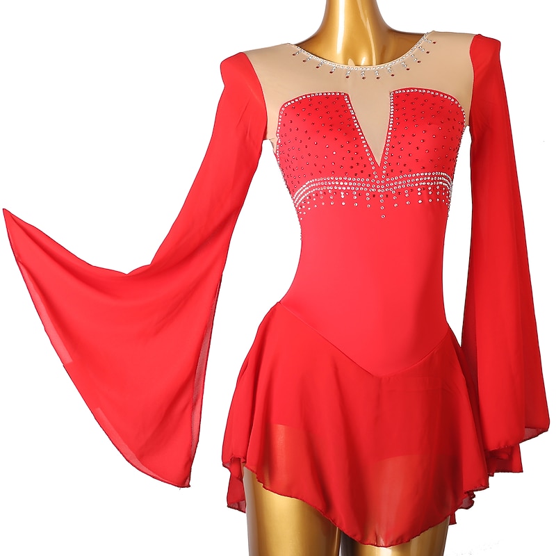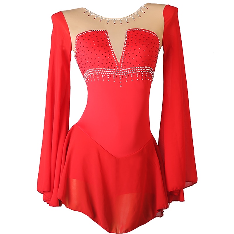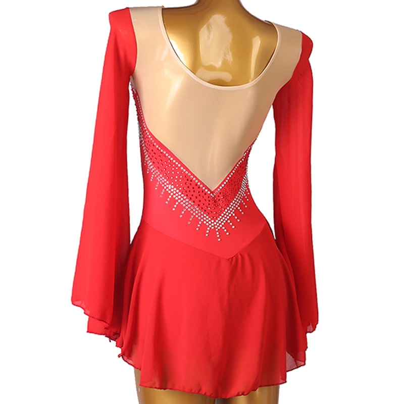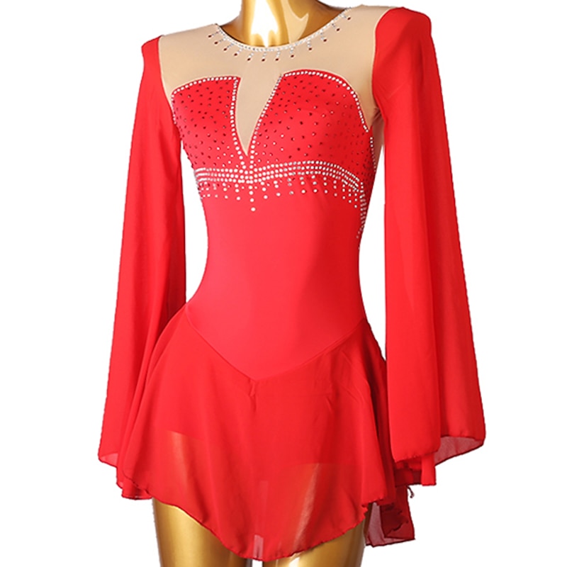 More information about Figure Skating Dress Women's Girls' Ice Skating Dress Outfits Black Burgundy Royal Blue Patchwork Mesh Spandex High Elasticity Training Practice Professional Skating Wear Handmade Classic Crystal