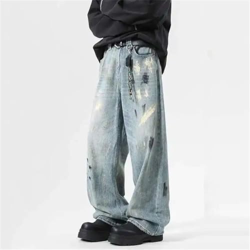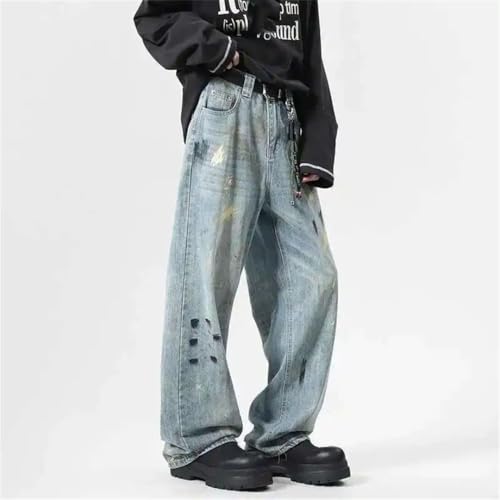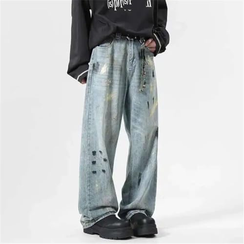 More information about Men's Jeans Splash-Ink Contrast Color American Style Loose Straight Wide Leg Casual Denim Pants