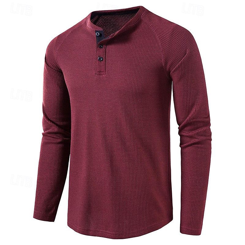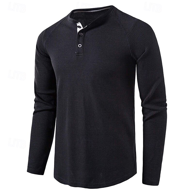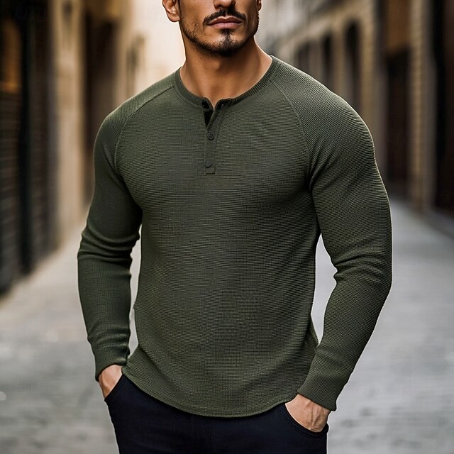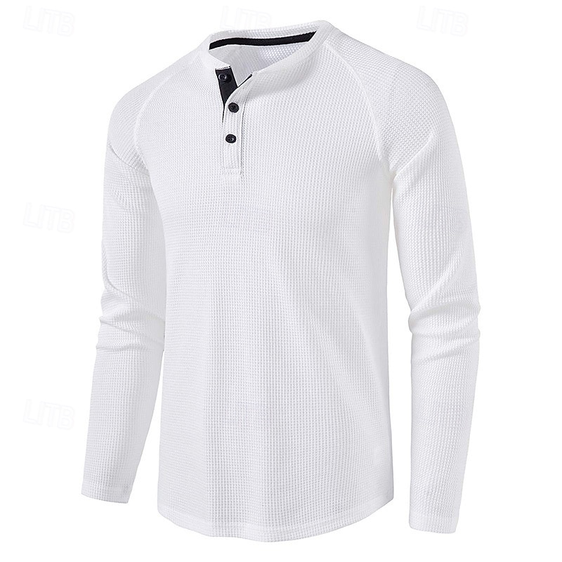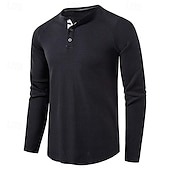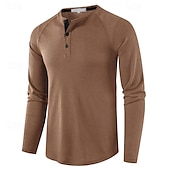 More information about Men's T shirt Waffle Henley Shirt Henley Shirt Tee Top Long Sleeve Shirt Plain Henley Street Vacation Long Sleeve Knitting Clothing Apparel Fashion Designer Basic