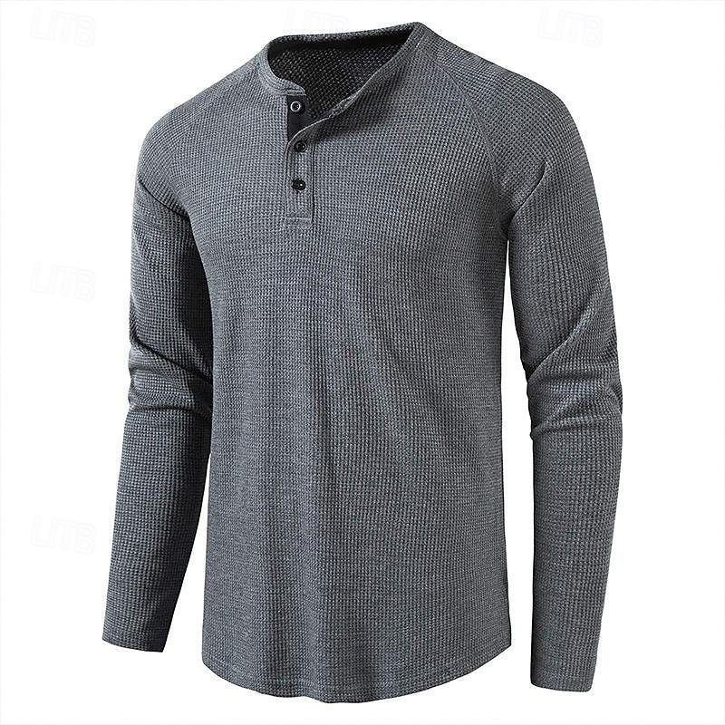 HOT ! Men's T shirt Waffle Henley Shirt Henley Shirt Tee Top Long Sleeve Shirt Plain Henley Street Vacation Long Sleeve Knitting Clothing Apparel Fashion Designer Basic
