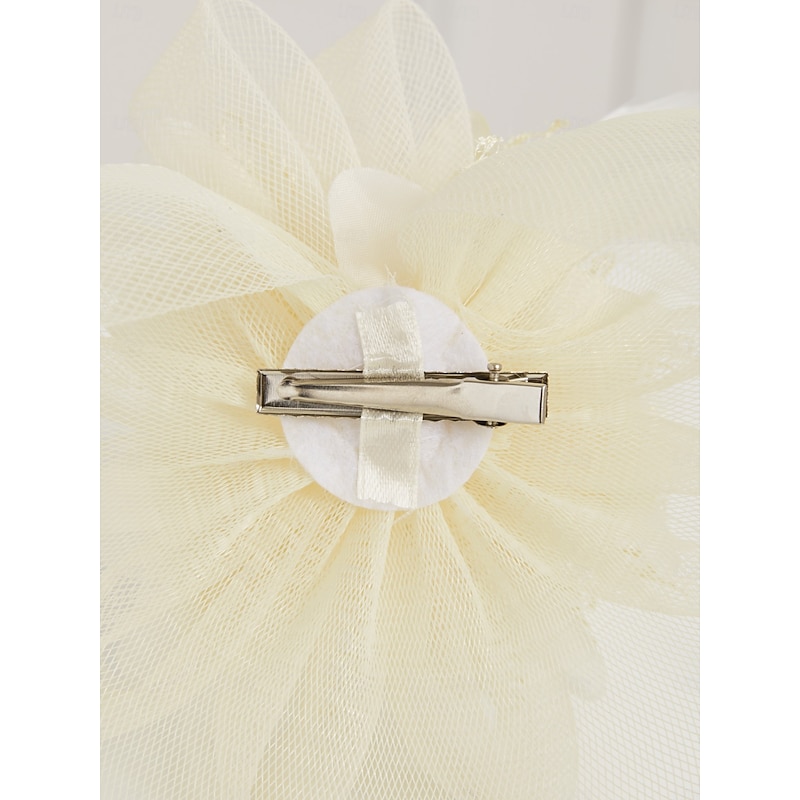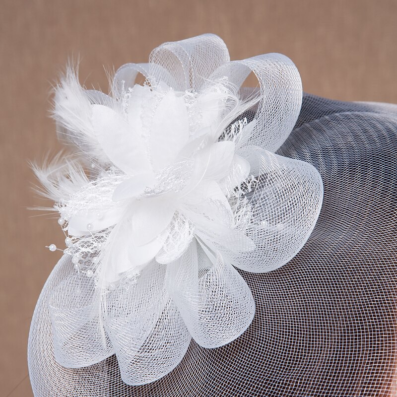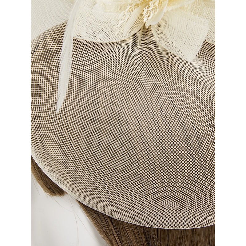 White Wedding Fascinator Tulle Beaded Organza Fascinators Hats Headwear Clip Vintage Elegant with  Feathers Fur Flower 1 Piece Kentucky Horse Race Tea Party Ladies Day Headpiece 29