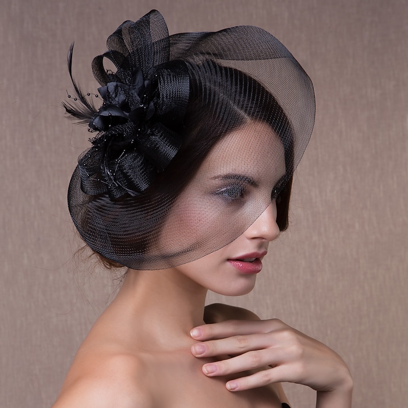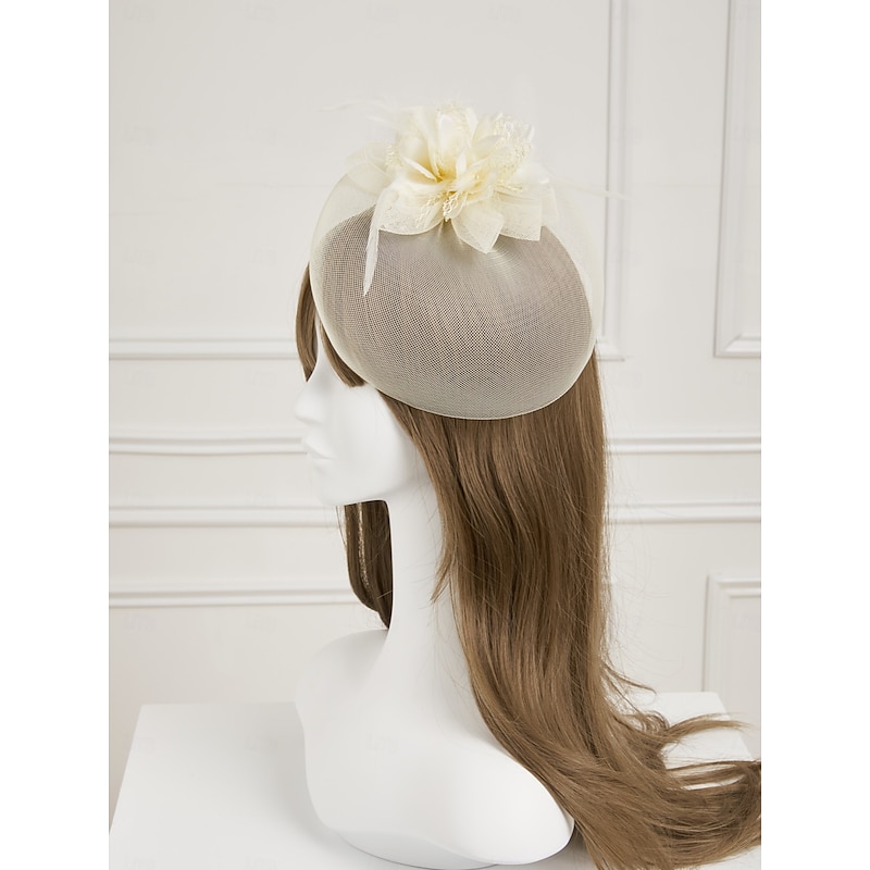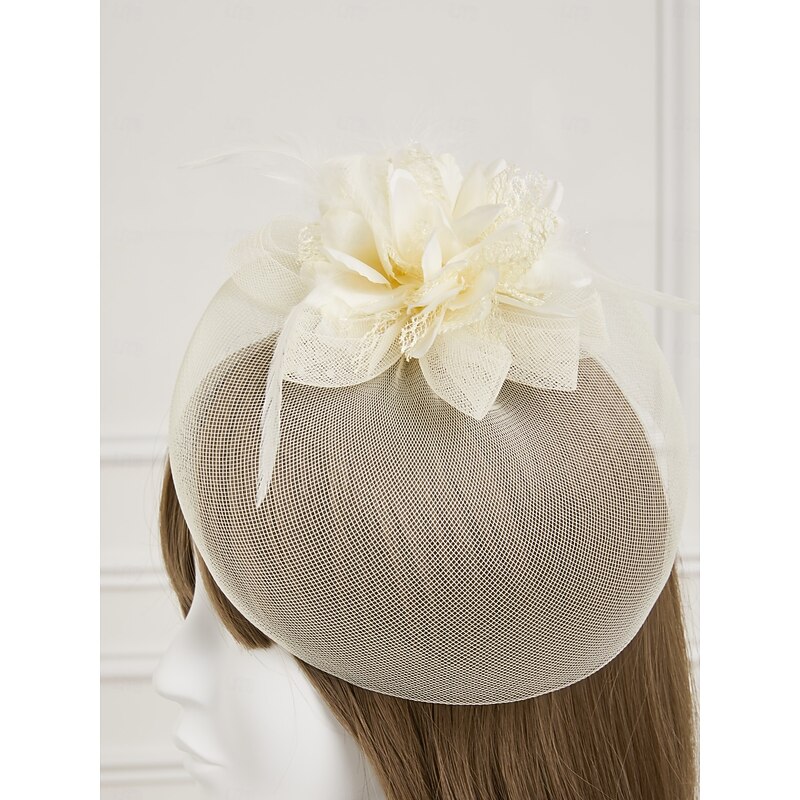 HOT ! White Wedding Fascinator Tulle Beaded Organza Fascinators Hats Headwear Clip Vintage Elegant with Feathers Fur Flower 1 Piece Kentucky Horse Race Tea Party Ladies Day Headpiece