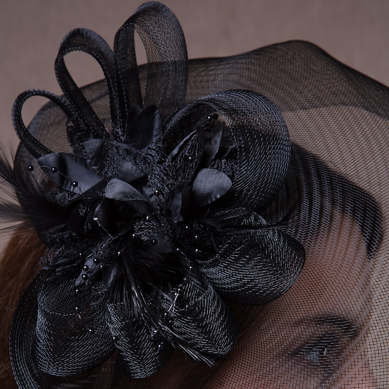 More information about White Wedding Fascinator Tulle Beaded Organza Fascinators Hats Headwear Clip Vintage Elegant with Feathers Fur Flower 1 Piece Kentucky Horse Race Tea Party Ladies Day Headpiece