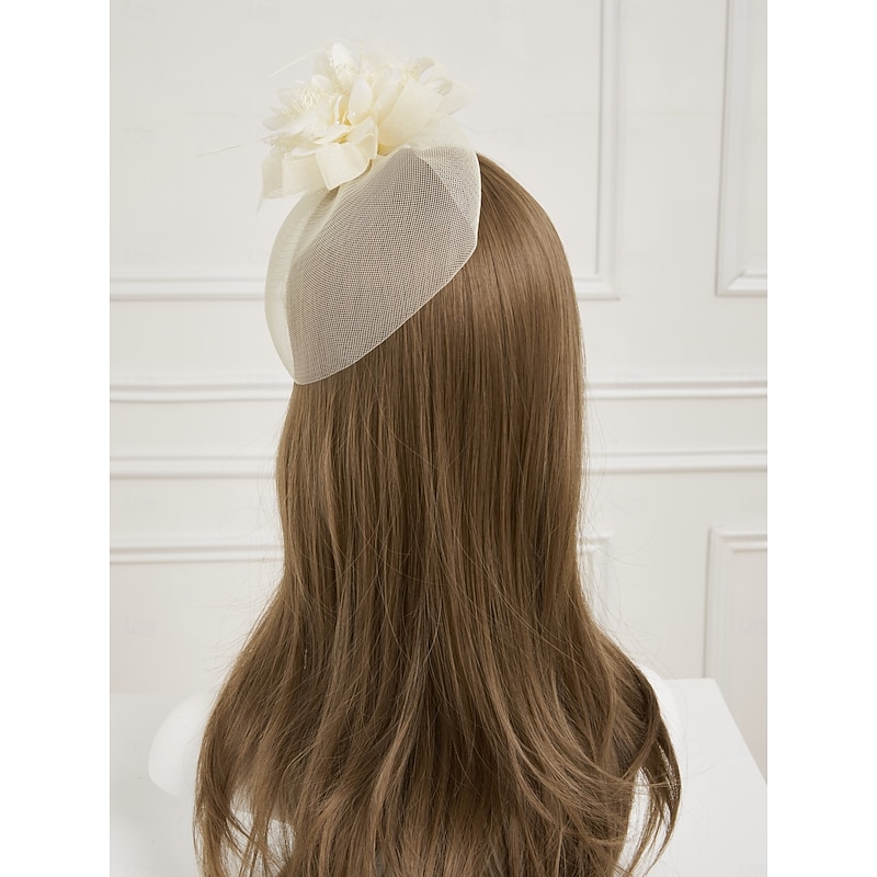 White Wedding Fascinator Tulle Beaded Organza Fascinators Hats Headwear Clip Vintage Elegant with  Feathers Fur Flower 1 Piece Kentucky Horse Race Tea Party Ladies Day Headpiece 24