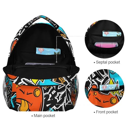 Colorful Joystick Video Game Graffiti Backpack Laptop Tablet Travel School Bag with Name Tag for Boys Girls 7