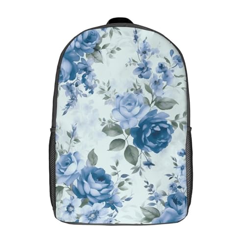 More information about Blue Flower Floral Pattern Roses Backpack - Durable 600D Polyester, 17 Inch Backpack with Ergonomic Adjustable Straps, Lightweight Travel Bag for Men & Women