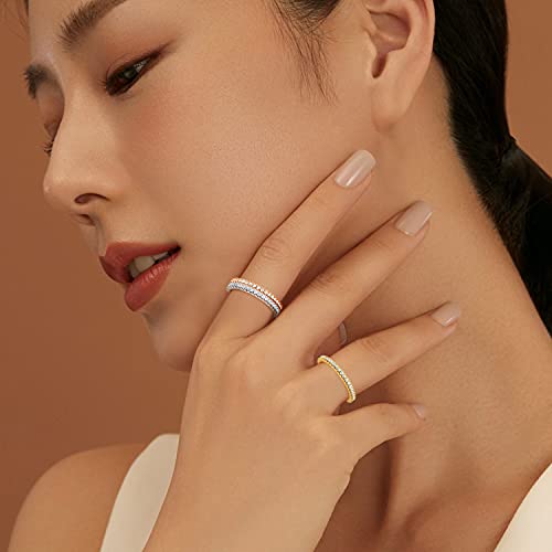 • Material: The stackable wedding rings set feature the finest AAA+ quality gem grade cubic zirconia. Plated in 18K gold for a lasting finish and to ensure its hypoallergenic.