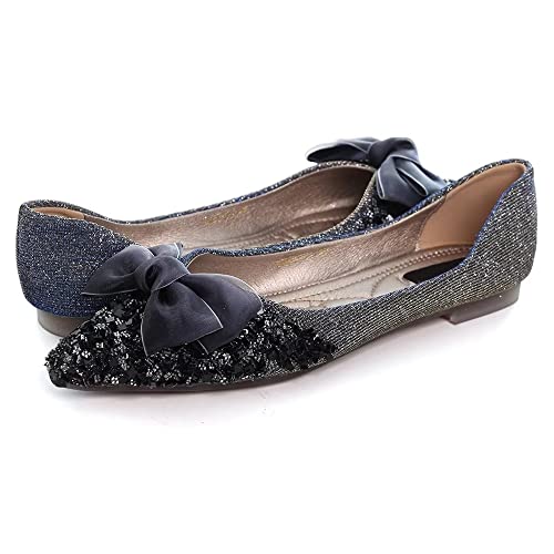 Stunner Bowknot Ballet Flats for Women Cute Bowtie Slip on Pointy Toe Rhinestone Dress Flat Shoes Loarfers 6