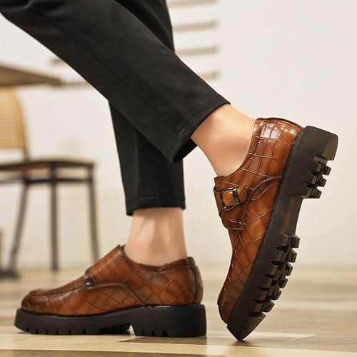 Men's Patent Leather Platform Loafers Classic Buckle Anti Slip Business Dress Shoes Height Increasing Thick Soled Work Meetings Weddings Casual Shoes 7