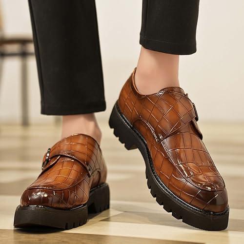 Men's Patent Leather Platform Loafers Classic Buckle Anti Slip Business Dress Shoes Height Increasing Thick Soled Work Meetings Weddings Casual Shoes 6